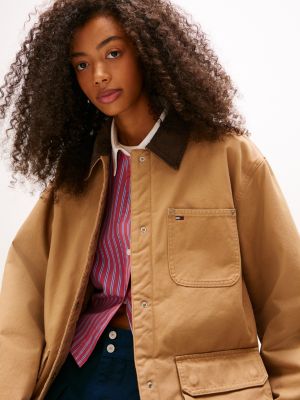 Stay warm in this padded, pure cotton twill jacket, featuring a traditional corduroy collar and multiple front pockets for a utility-inspired look.