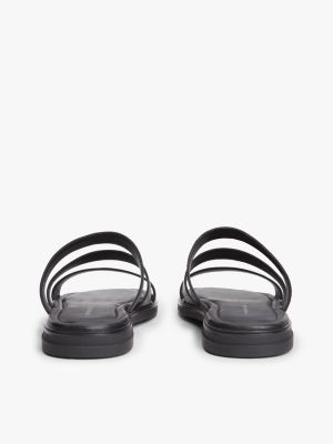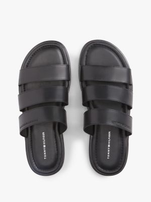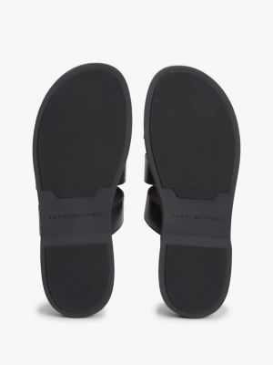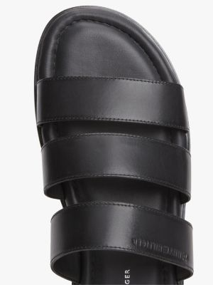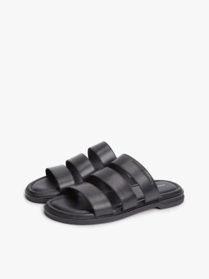 Debossed Logo Strap Leather Sandals