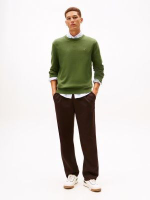 This pure combed cotton crew-neck jumper provides a classic look for cooler days, whether worn alone or as a top layer.