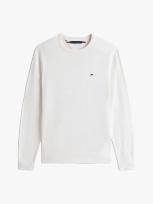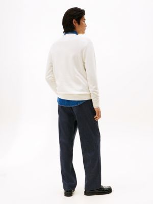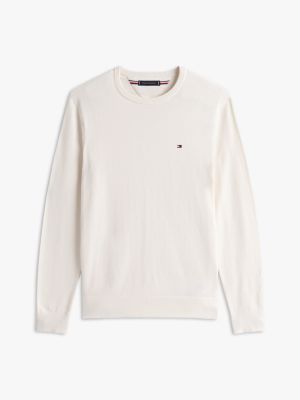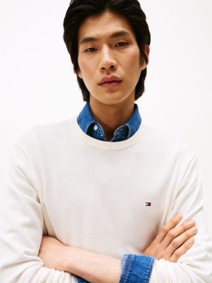 This pure combed cotton crew-neck jumper provides a classic look for cooler days, whether worn alone or as a top layer.