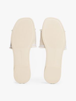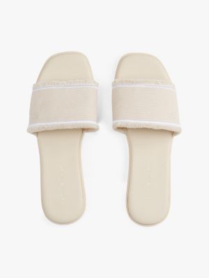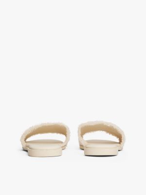 These open-toed sandals deliver classic holiday styling, featuring a canvas upper with frayed edges for a textured look.