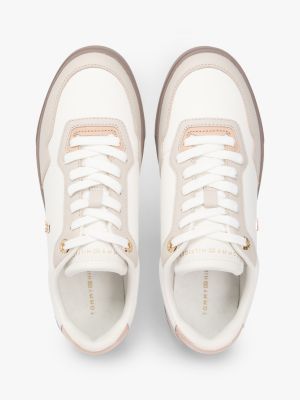 Mixed upper panels lend statement textural appeal to these cupsole trainers, while metallic branded detailing injects a luxe finishing touch.
