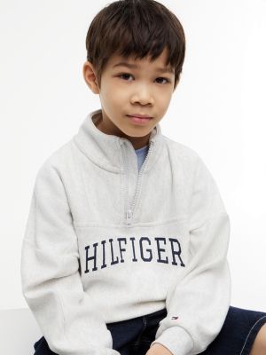 This cosy cotton-blend terry sweatshirt features a funnel neck and quarter-zip closure, while sporty logo embroidery introduces a varsity-inspired twist.