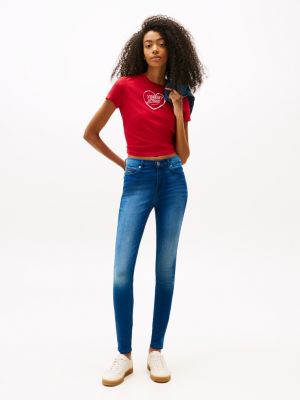 Crafted in power-stretch cotton denim, these skinny jeans contour to your body for a streamlined, flattering fit that moves with you. The mid-rise cut sits comfortably on the waist, enhancing your natural shape for a classic look. Fading on the legs complements whiskering on the thighs, adding authenticity to the pair. Five pockets provide everyday practicality, while the premium fabric ensures lasting comfort and durability. Finished with iconic Tommy Jeans branding, these jeans lend an unmistakable touch of style to any casual or dressed-up ensemble. Whether styled with trainers and a tee or a tailored blazer, they’re designed to keep pace with your daily diary.