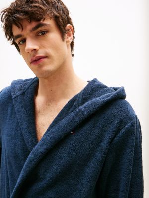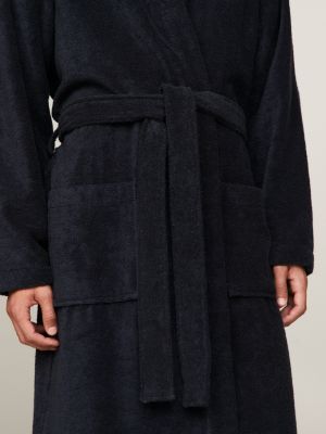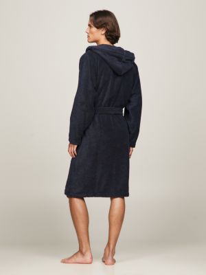 The regular fit and soft, pure cotton towelling fabric ensure this robe is perfect for throwing on after every shower, swim, or slow morning at home. The generously sized hood adds warmth and comfort, while the self-tie belt allows for a customisable, secure fit. Two roomy patch pockets offer practical storage for everyday essentials, including your phone or for carrying toiletries at the spa or the gym. Finished with signature Tommy Hilfiger branding on the chest, this bathrobe brings understated polish to lounging, whether you're at home or post-workout. It comes with a hook inside the collar, so keep it hanging nearby for easy grab-and-go access.