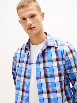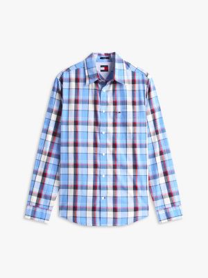 This pure cotton poplin shirt features a check design for timeless style, with flag embroidery providing that signature finish.