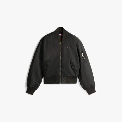This padded twill jacket delivers classic bomber detailing with its baseball collar, rib-knit trims and utility-inspired zipped pocket on the sleeve.