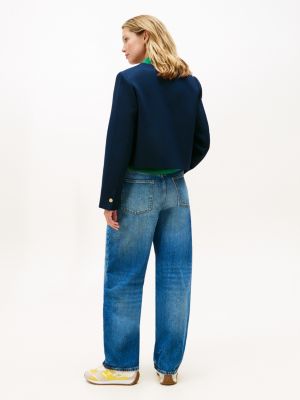 This collarless double-breasted jacket, crafted from a textured wool-blend weave, is embellished with contrasting branded buttons for a timeless look.