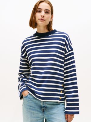 Our beautifully crafted women's sweatshirts come in a range of bold prints, vivid colours and iconic logos to ensure every woman's wardrobe is catered for. Explore the latest designs and styles of ladies' sweatshirts by Tommy Hilfiger and Tommy Jeans to create your favourite womenswear look. Our women's grey sweatshirts are the perfect addition to your loungewear, or the go-to item to slip on after a workout. Opt for any of our women's black sweatshirts with slim fit jeans for smart-casual chic during your weekend socialising with friends. Make a statement with our iconic women's sweatshirts with flag design for a 'go anywhere’ look. Wear with a straight-fit denim jeans and a pair of trainers to achieve our signature East Coast cool. For added comfort, slip into a warm padded jacket. Our collection covers contemporary styles including cut-outs and off the shoulder, together with classic women's sweatshirts.