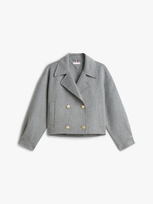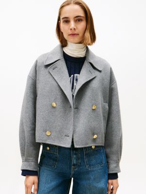 Refine your outerwear collection with this timeless peacoat, crafted from a double-faced wool blend and finished with luxe gold-tone buttons.